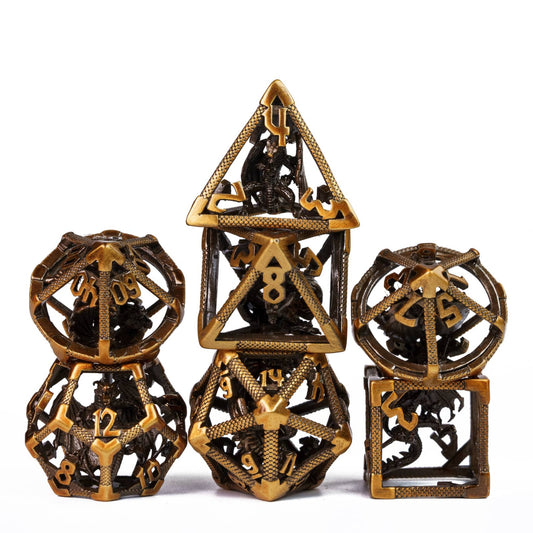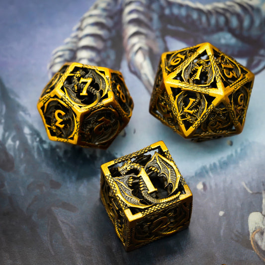 Ancient Gold Dragon - Hollow Metal Dice Set