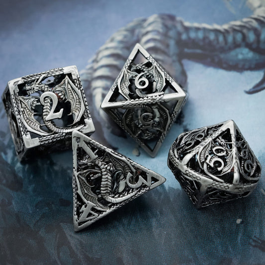 Ancient Silver Dragon - Hollow Metal Dice Set