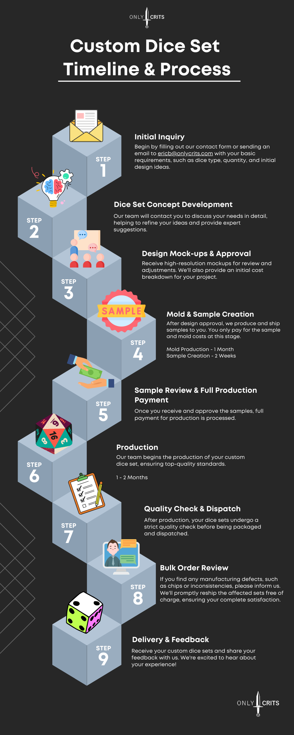 Partnership Video"After partnering with Only Crits for numerous sponsored videos, I brought up the idea of creating a custom dice set. Eric and the team were excited about the possibility, and they made the process easier than I could have imagined. The end result was a limited edition, high-quality metal dice set that my viewers loved as much as I did!"